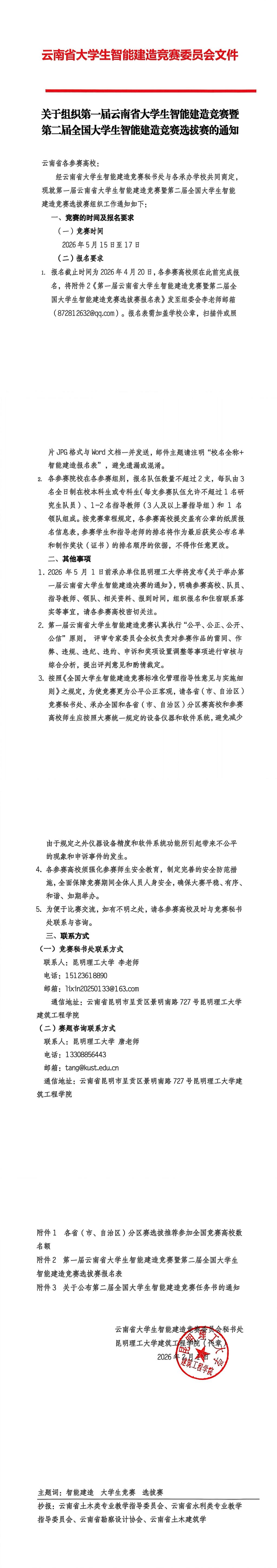 关于组织第一届云南省大学生智能建造竞赛暨第二届全国大学生智能建造竞赛选拔赛的通知